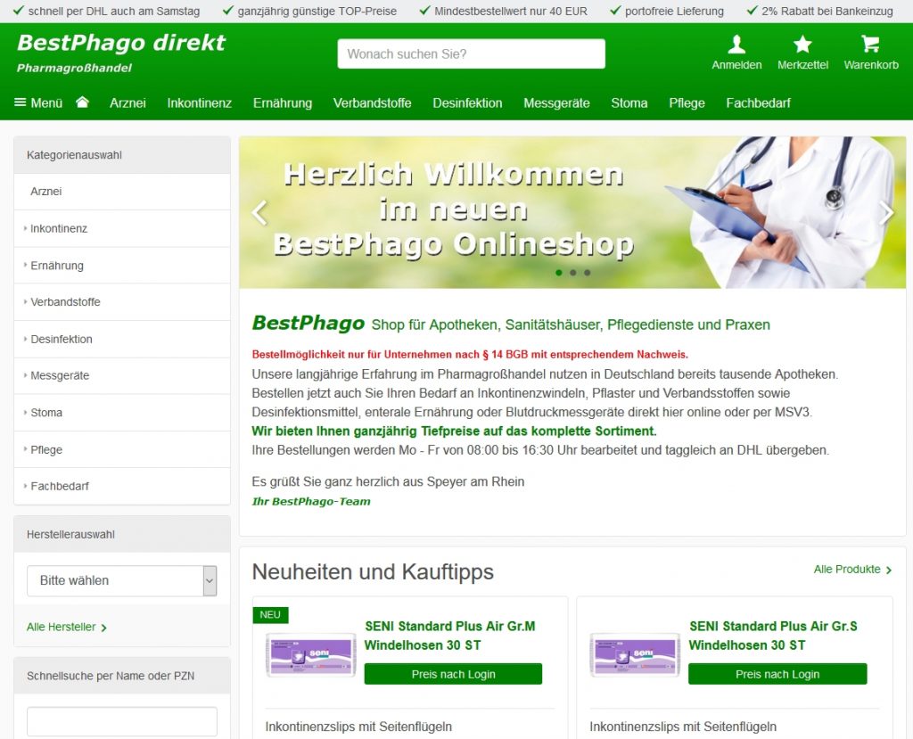 Wir bieten im Onlineshop unseren Apotheken, Sanitätshäusern und sonstigen geschätzten Kunden einen weiteren Channel, rund um die Uhr bequem zu bestellen. Neben den üblichen EDV-gestützen Bestellverfahren (seriell, Dafü, MSV3) oder Telefon und Fax haben die Kunden auch die Möglichkeit, sich vorab über Angebote zu informieren und das passende Produkt zu bestellen. BestPhago direkt bietet Ihnen ganzjährig Tiefpreise!